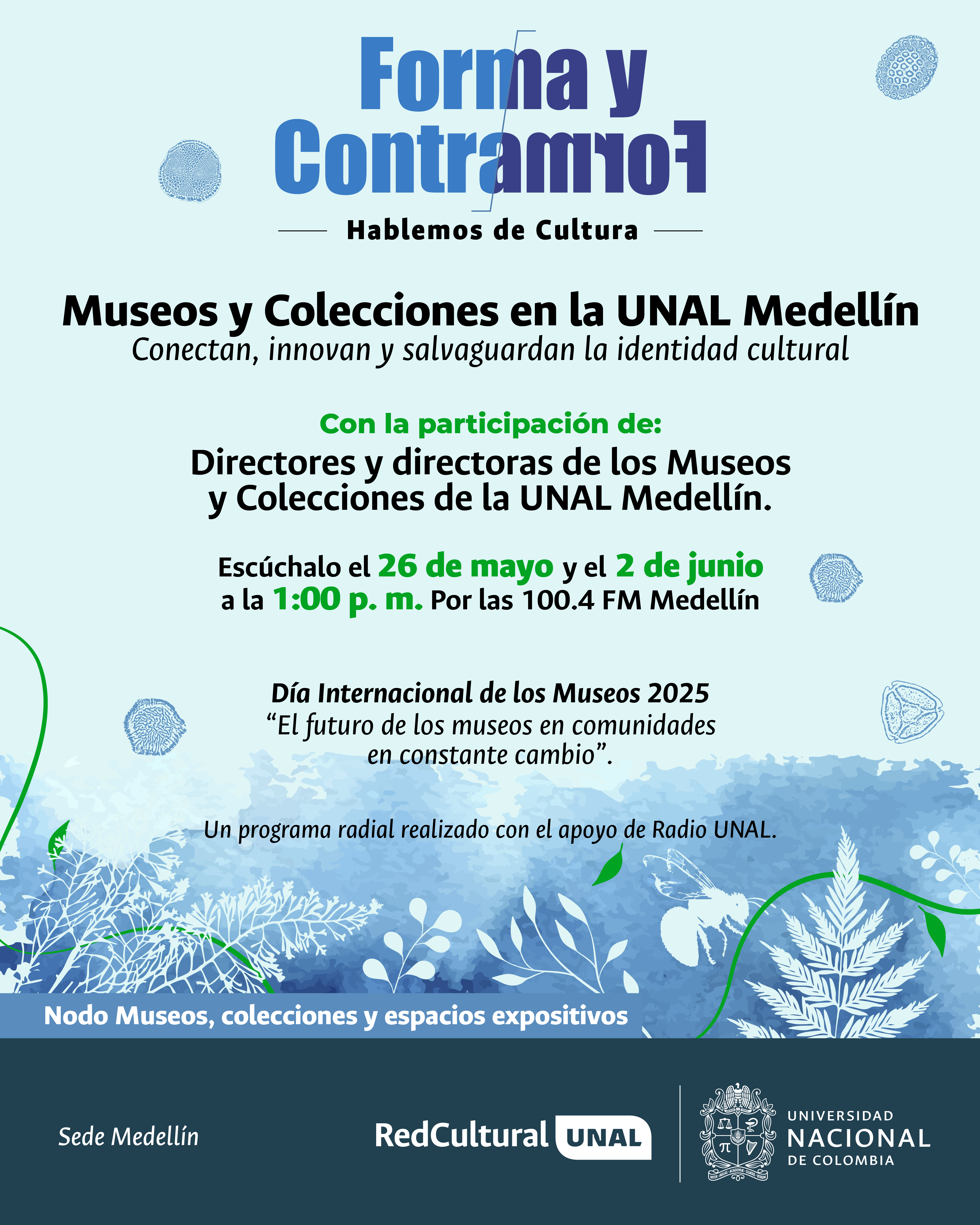 ¿Nos reconocemos como habitantes de la red de la vida y cómo esta a su vez nos habita y le da sentido a nuestra existencia? En el marco del Día Internacional de los Museos 2025, con el tema "El futuro de los museos en comunidades en constante cambio", en este episodio conversamos con los directores y directoras de los Museos y las Colecciones de la UNAL Medellín. Porque conectan, porque innovan y porque salvaguardan la identidad cultural.